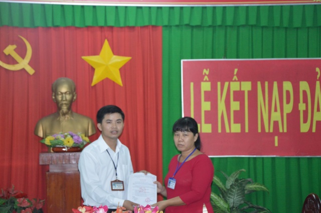 Tại buổi Lễ thay mặt Chi bộ, đồng chí Đoàn Thùy Lâm - Phó Bí Chi bộ đã công bố, trao Quyết định kết nạp đảng viên cho đồng chí Phạm Ngọc Văn.