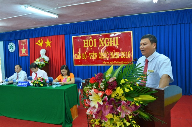 Sáng ngày 30/12/2016, Phân hiệu Trường Đại học Lâm Nghiệp đã long trọng tổ chức Hội nghị cán bộ viên chức năm 2016 nhằm kiểm điểm việc thực hiện nghị quyết Hội nghị đã đề ra năm học 2015 - 2016 và bàn biện pháp thực hiện kế hoạch, nhiệm vụ công tác năm học 2016 - 2017.