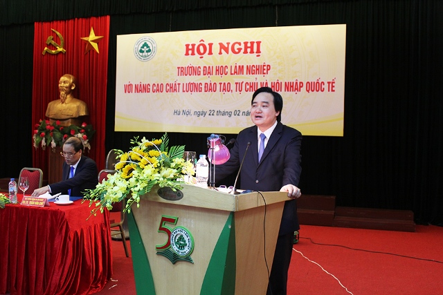 Phát biểu chỉ đạo Hội nghị, Bộ trưởng Phùng Xuân Nhạ ghi nhận, biểu dương và chúc mừng những thành tựu đạt được của Nhà trường và nhấn mạnh: Trường Đại học Lâm nghiệp là một trong những đơn vị có nhiều đóng góp thiết thực cho sự phát triển của ngành Lâm nghiệp, phát triển nông nghiệp và nông thôn. Bộ trưởng nhất trí cao với những kiến nghị về định hướng phát triển Nhà trường trong thời gian tới, đồng thời khẳng định Bộ sẽ ủng hộ để Nhà trường phát triển xứng tầm là trường đào tạo, nghiên cứu đầu ngành về lĩnh vực lâm nghiệp.