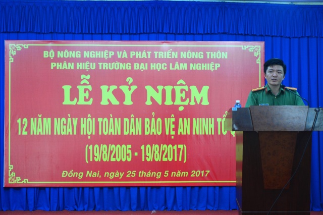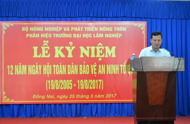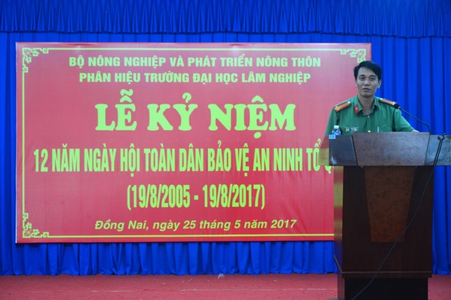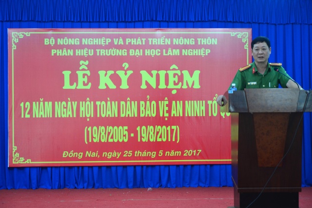 Chiều 25/5, tại Hội trường A3, Phân hiệu Trường Đại học Lâm Nghiệp đã phối hợp với Ủy ban nhân dân huyện và Công an huyện Trảng Bom tổ chức Lễ Kỷ niệm 12 năm “Ngày hội toàn dân bảo vệ ANTQ”.