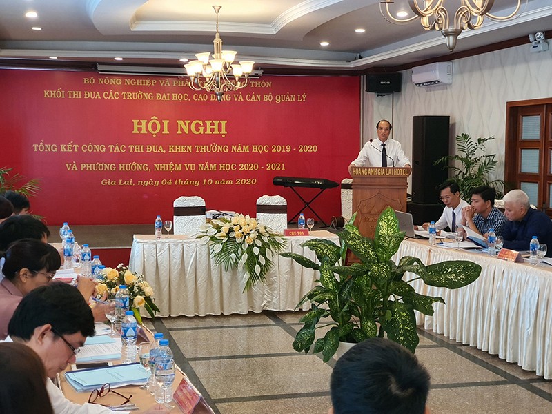 Thực hiện kế hoạch công tác năm 2020, được sự cho phép của Bộ Nông nghiệp và Phát triển Nông thôn (NN&PTNT), ngày 04 tháng 10 năm 2020, tại Thành phối Pleiku, tỉnh Gia Lai, Khối thi đua các trường Đại học, Cao đẳng và Cán bộ quản lý trực thuộc Bộ NN&PTNT đã tổ chức Hội nghị tổng kết công tác thi đua, khen thưởng năm học 2019 – 2020 và phương hướng nhiệm vụ năm học 2020 – 2021.