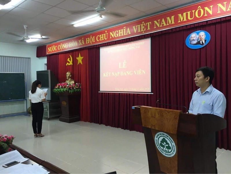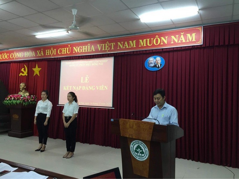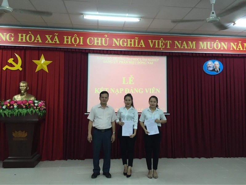 Tối ngày 14/11/2020 tại Phòng họp A nhà A1, Phân hiệu trường Đại học Lâm nghiệp. Chi bộ CT&CT Sinh viên long trọng tổ chức Lễ kết nạp Đảng viên mới cho 02 đồng chí: Nguyễn Thị Thu Hiền, K63_QLTN&MT; Trịnh Thị Mỹ Trinh, K62_QLTN&MT.
