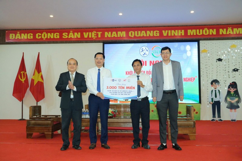 Nhân dịp này, Đại diện Hội Doanh nhân trẻ Đồng Nai đã trao tặng sinh viên cuốn sách “Con đường khởi nghiệp và những điều cần biết” của tác giả Nguyễn Duy Khương. Bên cạnh đó, Trung tâm Internet Việt Nam và Công ty TNHH P.A Việt Nam cũng trao tặng 3.000 tên miền “.vn” trong chương trình hiện diện trực tuyến với tên miền quốc gia. Đây là hoạt động hỗ trợ người dân, doanh nghiệp, hộ kinh doanh và sinh viên hiện diện trực tuyến an toàn, tin cậy, đồng thời thúc đẩy kỹ năng số và khai thác hiệu quả các công cụ số, góp phần đẩy mạnh chuyển đổi số toàn diện tại Đồng Nai.