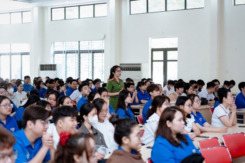 Chương trình diễn ra sôi nổi với phần giao lưu, hỏi – đáp giữa báo cáo viên và sinh viên, tạo điều kiện để người học chia sẻ những tình huống thực tế và được giải đáp trực tiếp. Các hình thức truyền thông trực quan như video, hình ảnh minh họa cũng được sử dụng nhằm tăng tính sinh động và hiệu quả tiếp nhận thông tin.