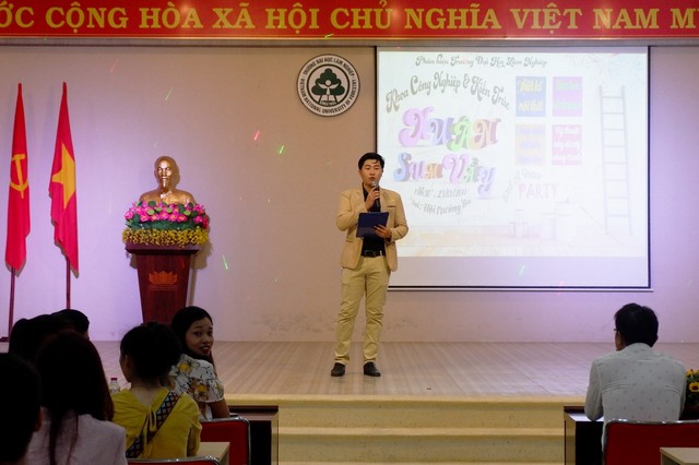 Mở màn buổi buổi giao lưu là tiết mục văn nghệ vô cùng sôi nổi do Thầy Nguyễn Văn Thoại - Nguyên Giảng viên Khoa Công nghiệp & Kiến trúc cùng với sinh viên trong Khoa và sinh viên của đội văn nghệ nhà trường.