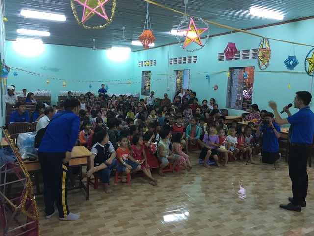 Các em nhỏ trong khu vực tại xã Phú Tân được nhận những phần quà nhân dịp trung thu.