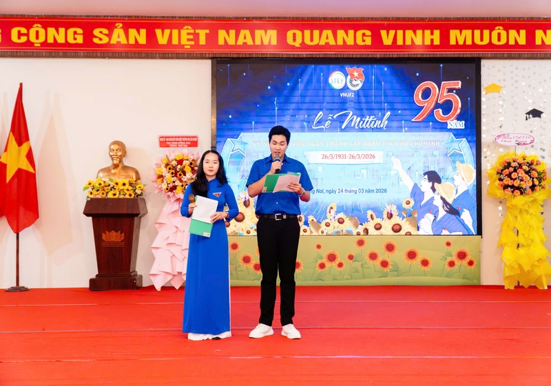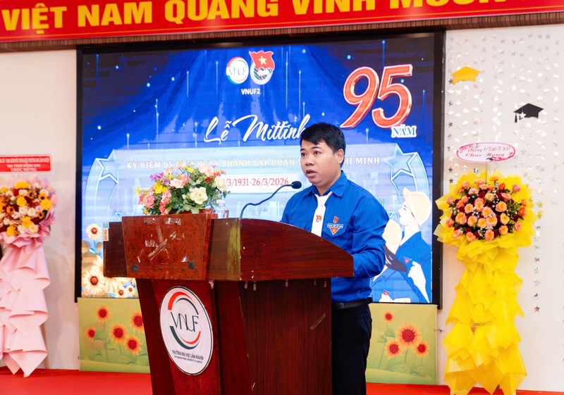 Chiều ngày 24/3/2026, tại Hội trường A3, Phân hiệu Trường Đại học Lâm nghiệp tại tỉnh Đồng Nai đã trang trọng tổ chức Lễ mittinh kỷ niệm 95 năm Ngày thành lập Đoàn Thanh niên Cộng sản Hồ Chí Minh (26/3/1931 – 26/3/2026). Sự kiện không chỉ mang ý nghĩa ôn lại truyền thống vẻ vang của tổ chức Đoàn mà còn là dịp quan trọng nhằm xác định rõ mục tiêu, nhiệm vụ và định hướng phát triển công tác Đoàn, phong trào thanh niên trong thời gian tới.