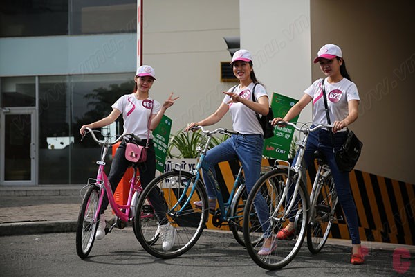 Dưới cái nắng gay gắt, những nụ cười tươi tắn vẫn nở trên những khuôn mặt xinh đẹp đang hào hứng băng qua từng chặng đường của buổi đạp xe.