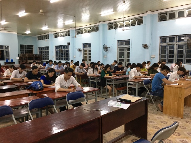 Các thí sinh dự thi làm bài thi trắc nghiệm & tự luận
