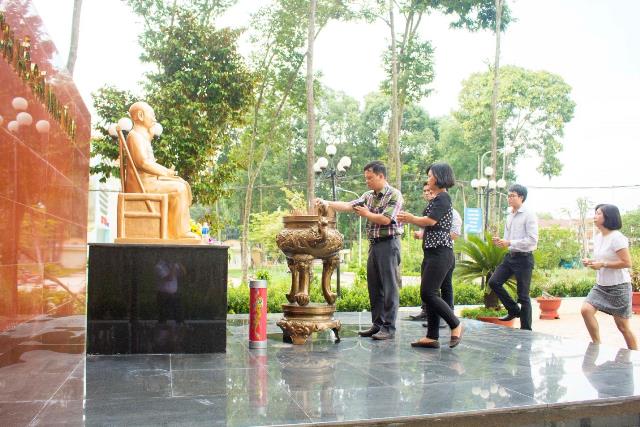 Các Thầy cô và các bạn sinh viên cùng dâng hương lên tượng đài Bác