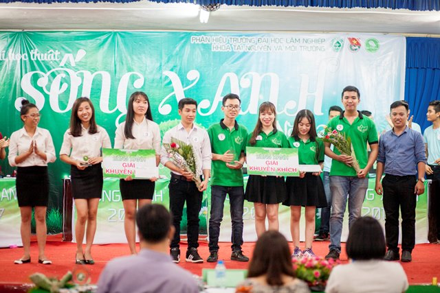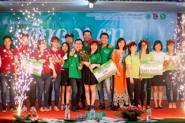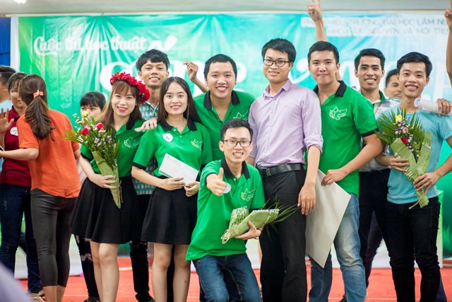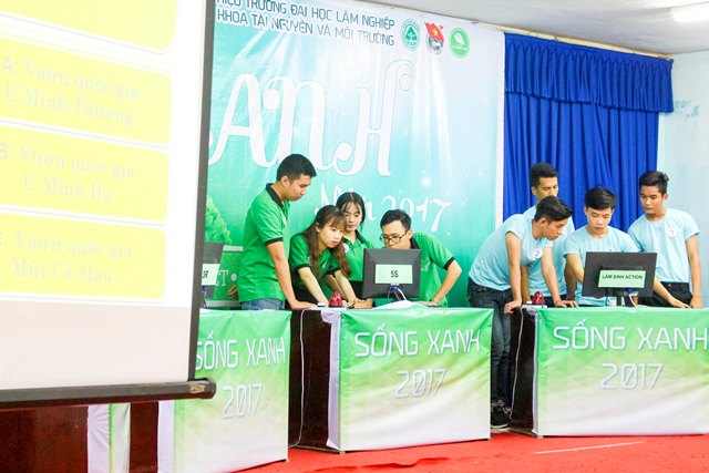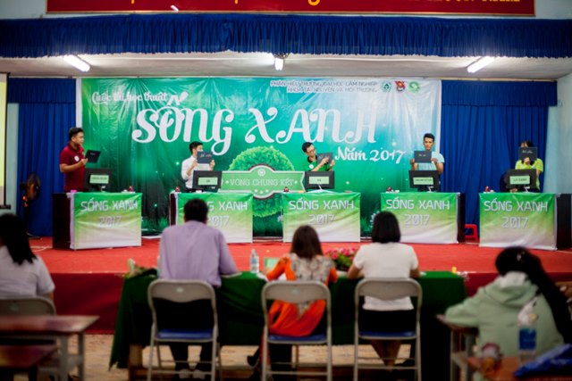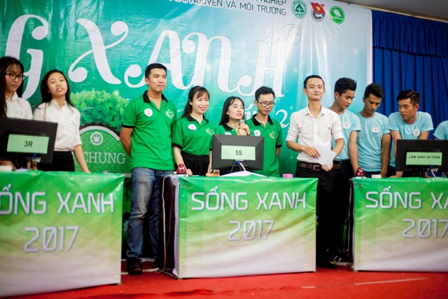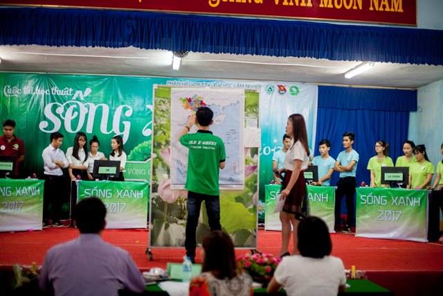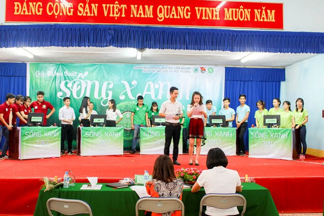 Vòng thi chung kết “Cuộc thi học thuật Sống Xanh” năm 2017 đã diễn ra long trọng khi có sự hiện diện của TS. Mai Hải Châu, Trưởng phòng Đào tạo; Ths. Cao Phi Long, Trưởng phòng CT&CT SV – Bí thư Đoàn trường; Ths. Nguyễn Thị Hà, Phó trưởng khoa - Phụ trách khoa TN&MT; TS. Kiều Mạnh Hưởng, Phó trưởng khoa TN&MT, TS. Phạm Văn Hường, Phó trưởng khoa Nông học, cùng toàn thể các thầy cô là đại diện cho các Liên chi Đoàn Khoa Kinh tế, Khoa CNKT, Khoa Lâm học và hơn 300 bạn sinh viên là cổ động viên các đội thi.