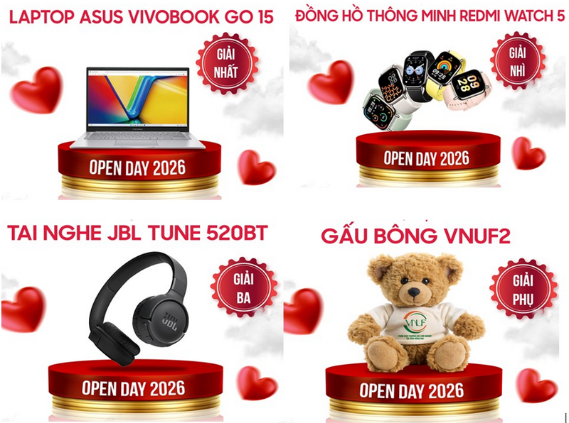 VNUF2 Open Day 2026 hứa hẹn sẽ là sự kiện sôi động, ý nghĩa, giúp học sinh hiểu đúng – chọn đúng ngành nghề, đồng thời mở ra nhiều cơ hội kết nối việc làm cho sinh viên VNUF2.